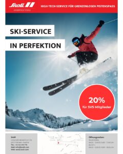 SNOLI Skiservice Ski-Service vom Profi für Profis und solche, die es werden wollen. 20% auf den Komfortservice & 25% auf alle lagernden Produkte WO? Unternehmerzentrum 17a, Öffnungszeiten s. www.snoli.com SONDERVERKAUF